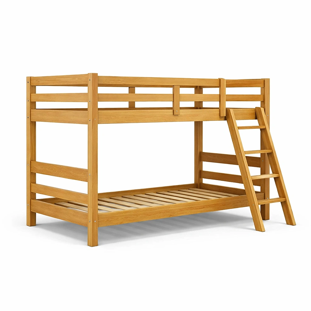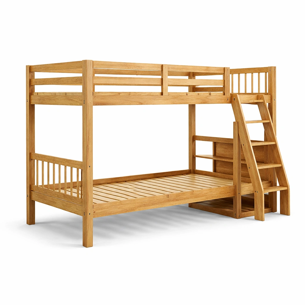 Etagenbett aus eiche natur mit leiter und schutzgeländer