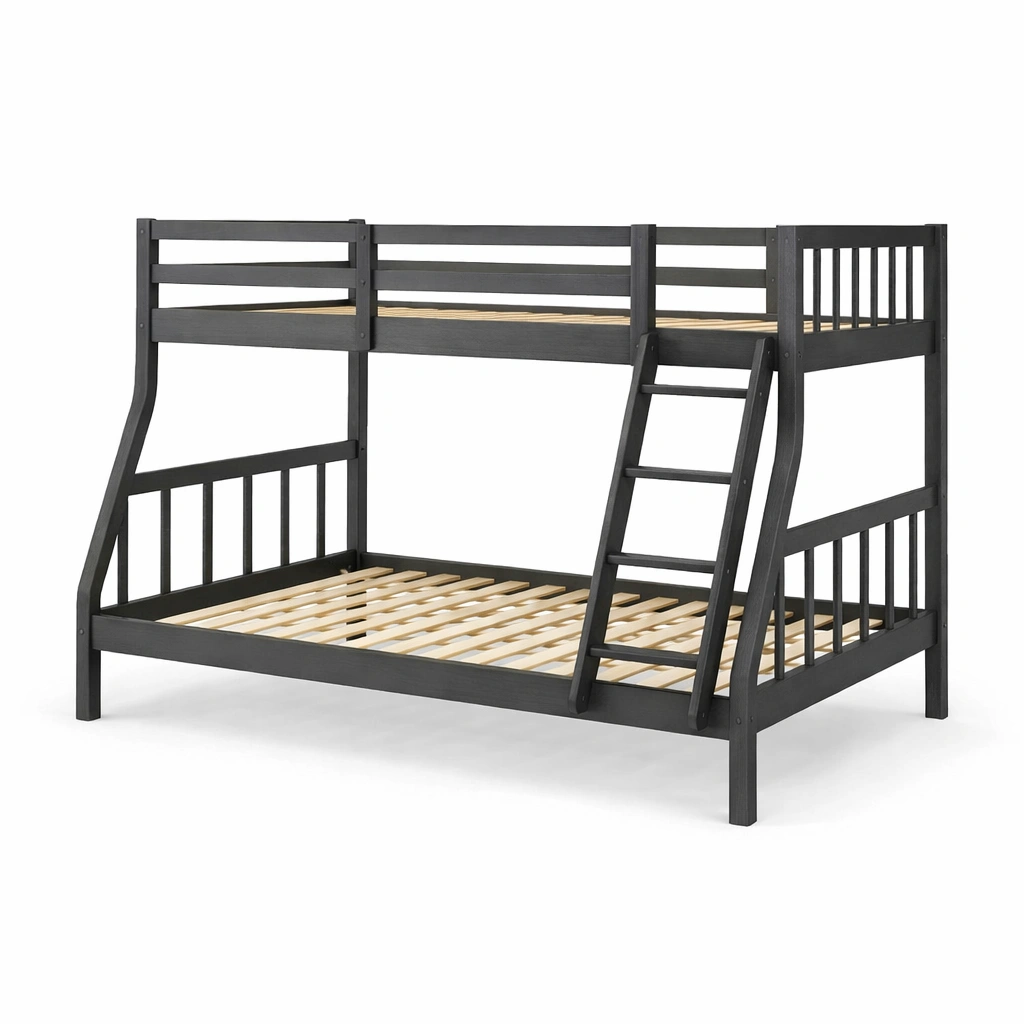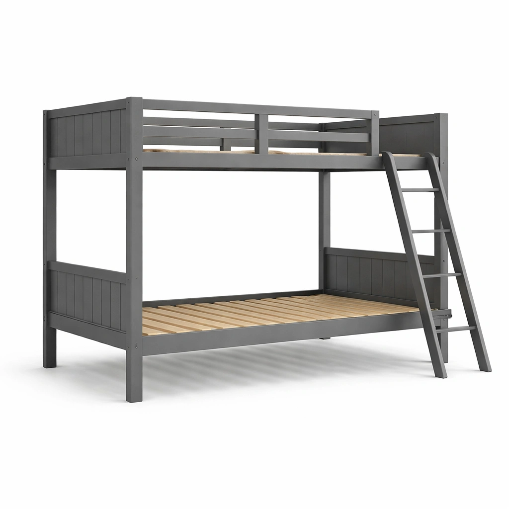 Etagenbett aus kiefernholz grau mit schräger leiter