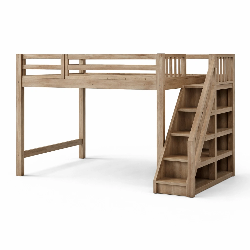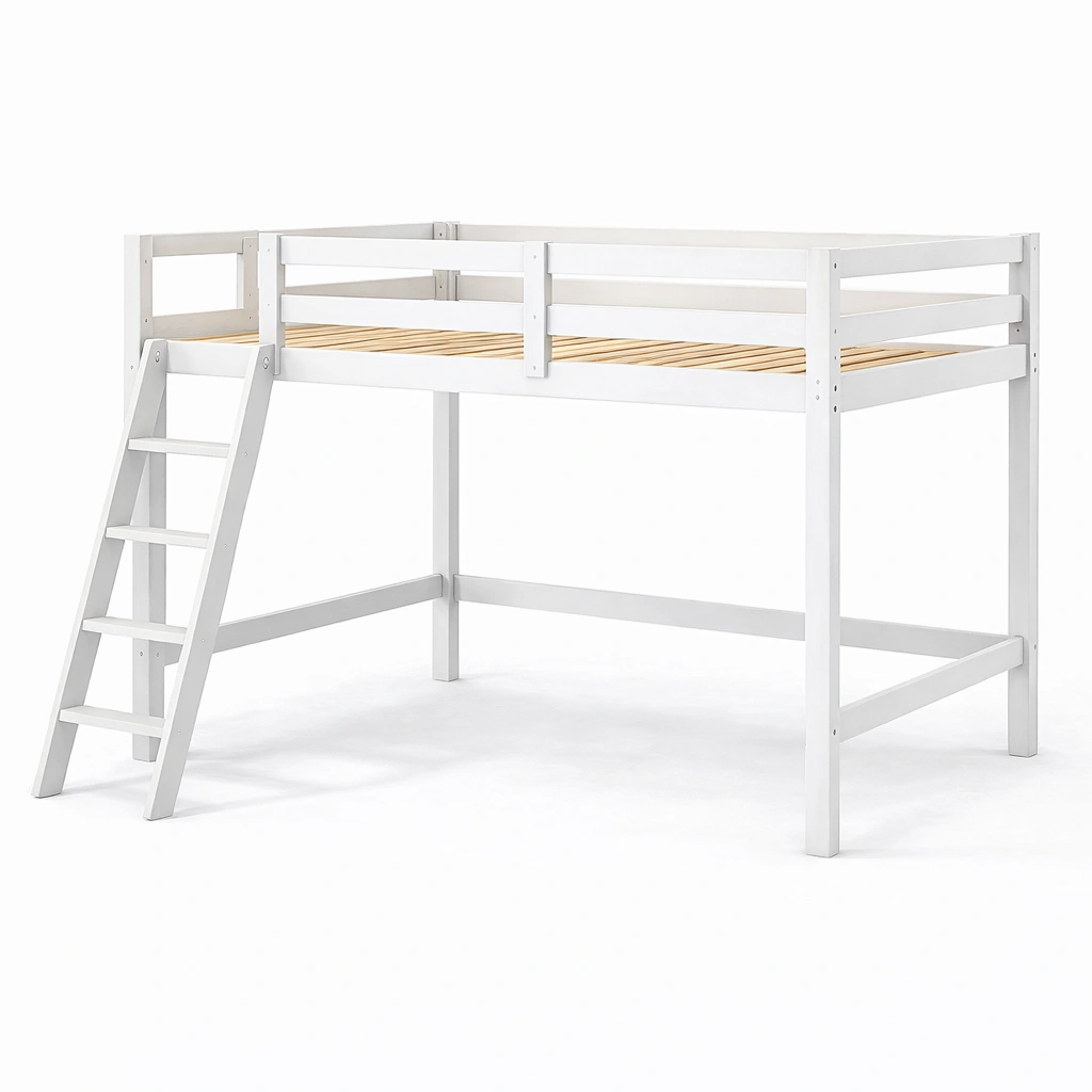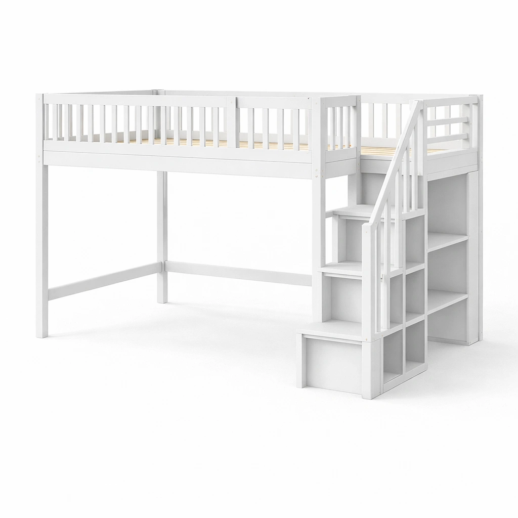 Hochbett aus massivholz weiß mit treppe und stauraum
