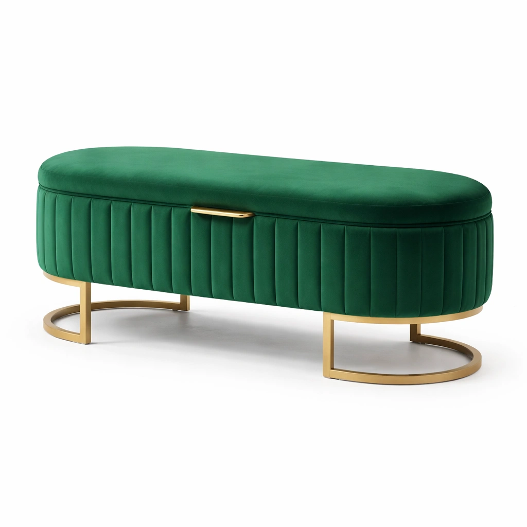 Sitzbank mit stauraum aus samt grün mit metallbeinen