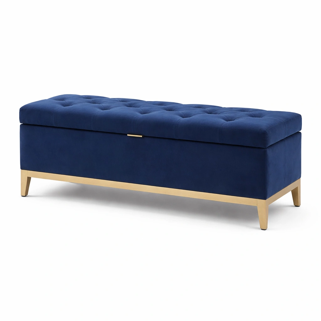Sitzbank mit stauraum aus samt dunkelblau mit metallrahmen