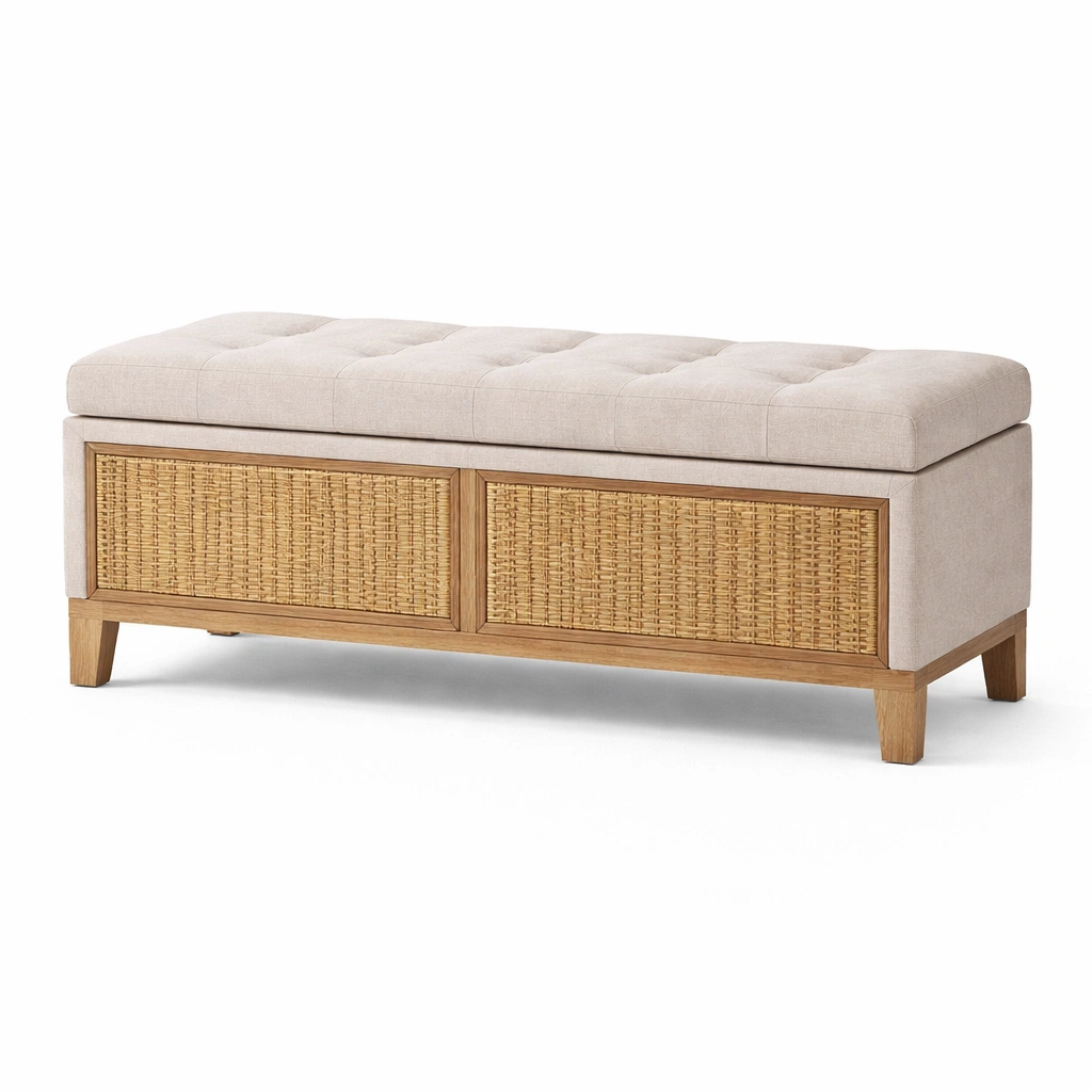 Sitzbank mit stauraum aus leinen beige mit rattan