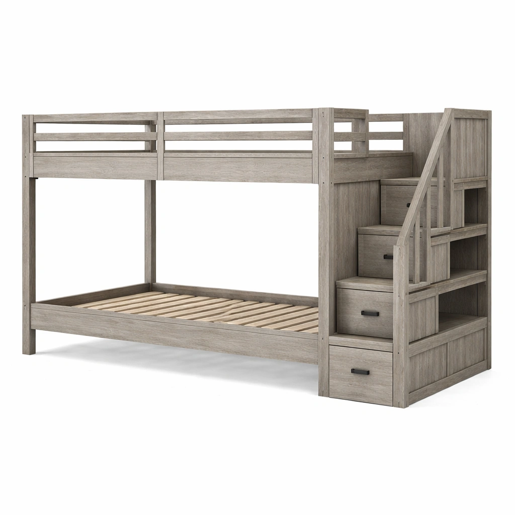 Enthaltene Komponenten: Treppenregal mit integrierten Schubladen