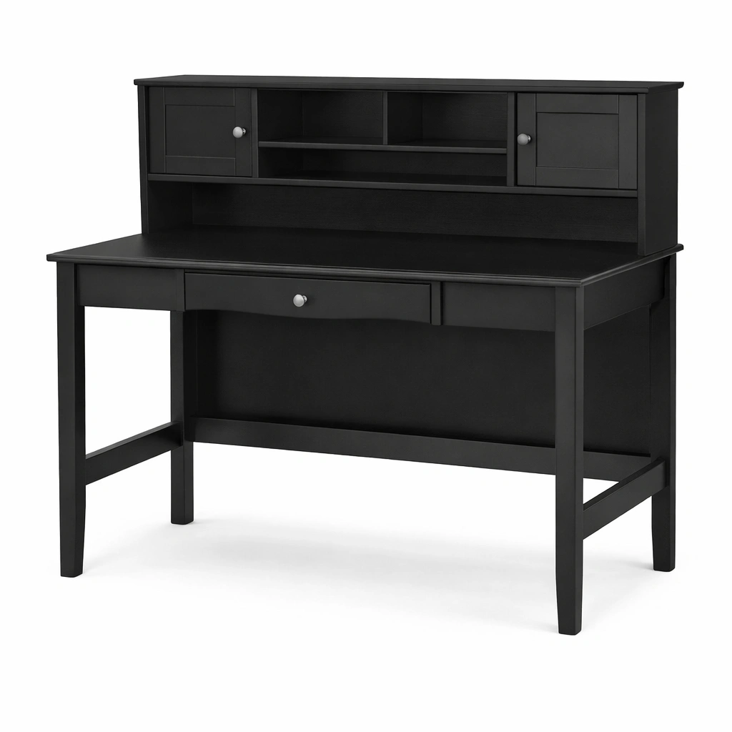 Schreibtisch aus holzwerkstoff schwarz mit schublade und regal