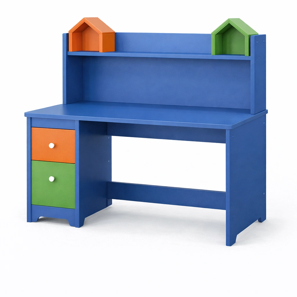 Dieser Kinderschreibtisch ist aus robustem MDF gefertigt und bietet eine funktionale Arbeitsfläche für Kinder.