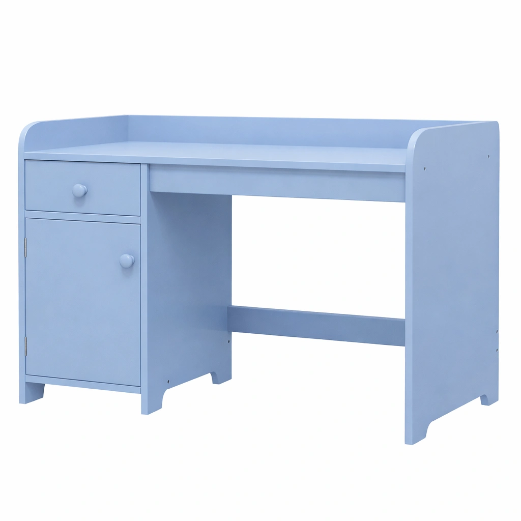 Dieser Kinderschreibtisch besteht aus mitteldichter Holzfaserplatte (MDF) mit einer glatten, leicht zu reinigenden Lackoberfläche. Der Tisch bietet eine Schublade und einen Schrank zur Aufbewahrung.